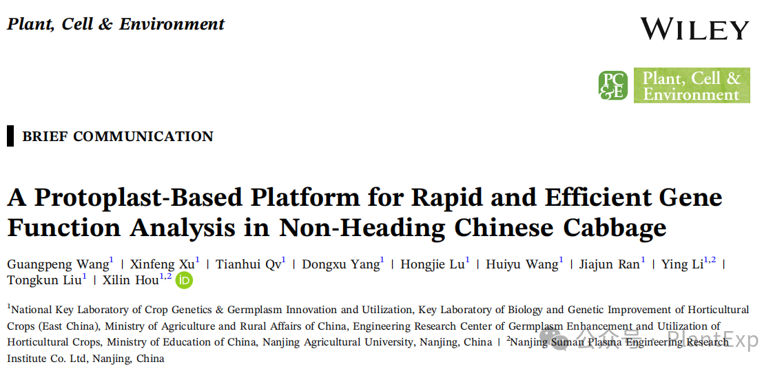侯喜林教授团队题为“A Protoplast‐Based Platform for Rapid and Efficient Gene Function Analysis in Non-Heading Chinese Cabbage”的研究论文,开发了组织和基因型非依赖的不结球白菜原生质体分离体系,并构建了整合蛋白亚细胞定位、蛋白互作验证、CRISPR/Cas9编辑预筛选以及高通量组学测序等多功能分析的高效研究平台(图1),为不结球白菜以及其他十字花科非模式蔬菜的功能基因组学研究提供了有效的工具。